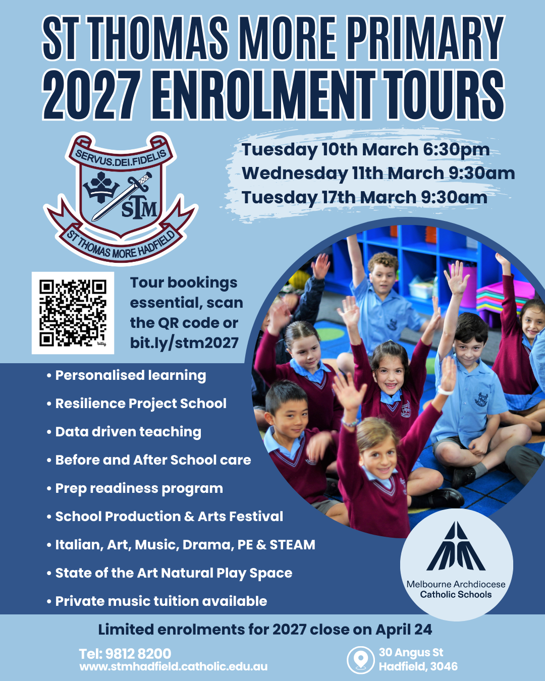 Book in an enrolment tour by filling out the form below. We currently have 3 dates for tours -
